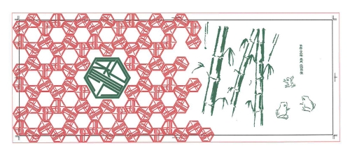 オリジナルロゴを地模様にして和風イラストと組み合わせてスタイリッシュなデザインで作成しました。