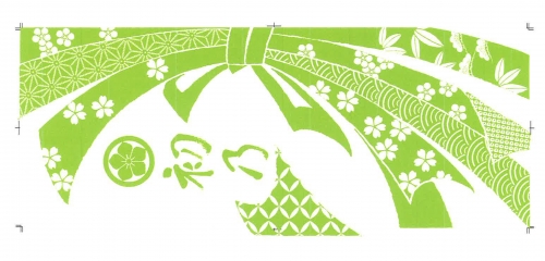 本染注染、家紋を入れて純和風柄なデザインで作成しました。