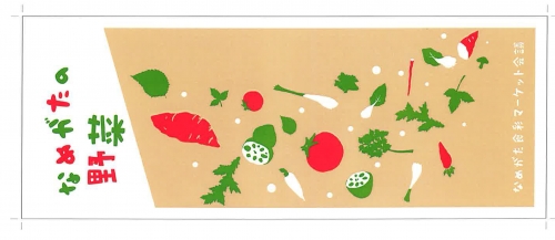 地元でとれた野菜のイラスト配列してかわいいデザインで作成しました。