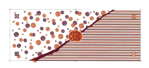 半分半分で柄を変えると単調さがなくなり、インパクトがあるデザインになります。