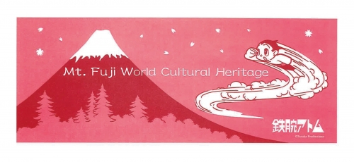 富士山と鉄腕アトムのコラボデザインでオリジナル手ぬぐいを贈答用として作成しました。