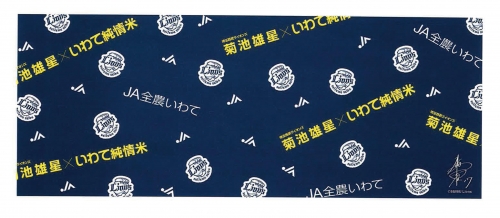 菊池雄星選手といわて純情米とのコラボでロゴマークを散りばめたデザインで作成しました。