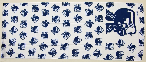 デビルのイラストをランダムに配置したオリジナル手ぬぐいを物販用として作成しました。