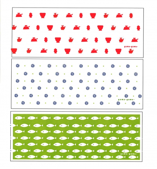 本染注染、オリジナルイラストを配列してシンプルでスッキリしたデザインで3パターン作成しました。