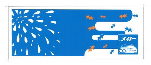 企業ロゴを用いて夏をイメージしたイラストで涼しげなデザインで作成しました。