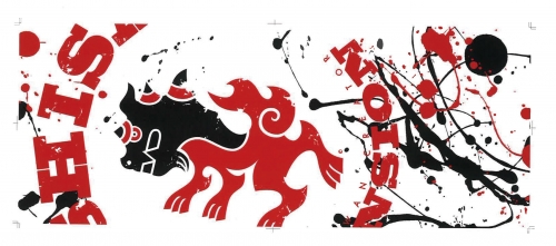 オリジナルキャラクターのライオンとインクが飛び散ったイメージでスタイリッシュな