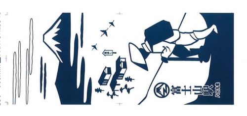 富士山と登山者のイラストをモチーフに江戸風デザインで作成しました。